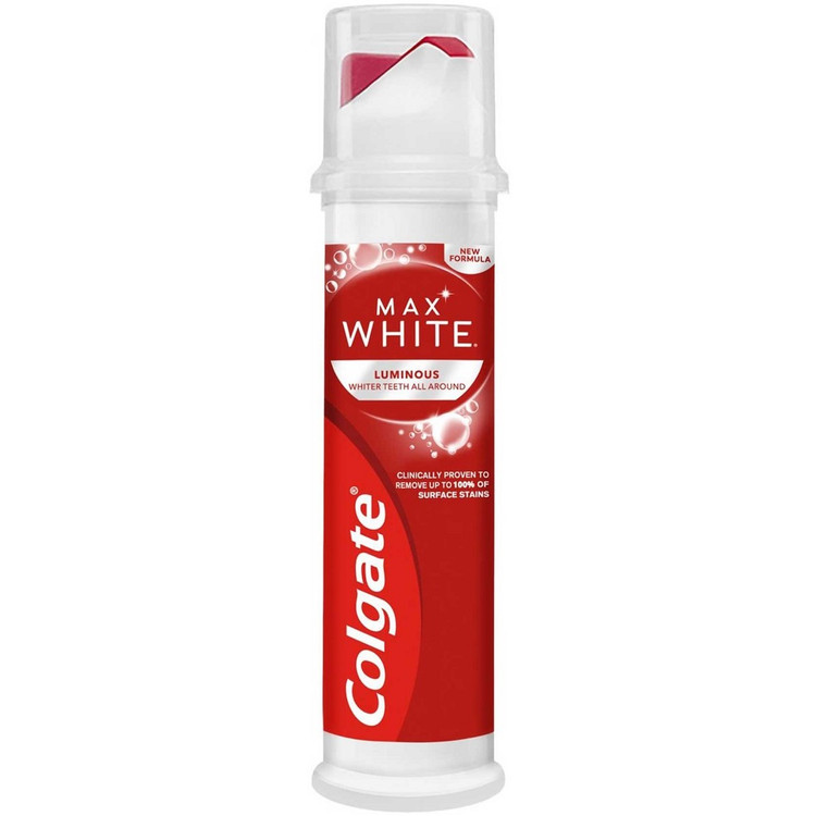 خمیردندان سفیدکننده کلگیت مکس وایت Colgate Max White Luminous دارای فرمول تایید شده کلینیکال جهت پاک کردن تا 100 درصد جرم ها از سطوح دندان می باشد. خمیردندان سفیدکننده مکس وایت کلگیت همچنین دارای تکنولوژی فوم هوشمند است که پاک کننده چندبعدی همه اطراف دندان با محافظت از مینای دندان بوده و برای استفاده روزانه مناسب است.
