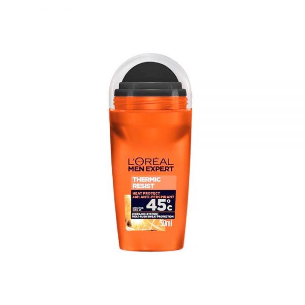 رول ضد تعریق لورال ترمیک رزیست LOreal Men Expert Thermic Resist جهت محفاظت در حین فعالیت های فیزیکی و استرس زای روزانه که منجر به افزایش حرارت بدن می شود طراحی شده و تا دمای 45 درجه سانتیگراد محافظت کننده خشکی زیربغل می باشد.