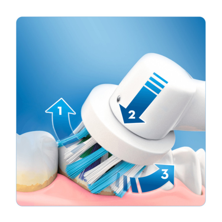 مسواک برقی اورال بی مدل Vitality به روش دو بعدی و با دو نوع حرکت نوسانی و چرخشی دندانها را تمیز میکند.