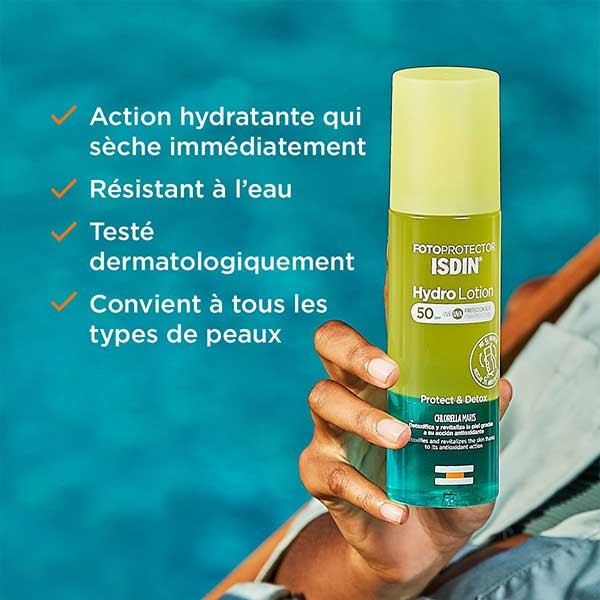 اسپری ضد آفتاب آبرسان ایزدین سم زدا Isdin Hydro Lotion یک انتخاب ایدهآل برای شماست تا حفظ زیبایی پوستتان را تضمین کند. بافت سبک و بر پایه آب، عملکرد فوقالعاده در دفع اثرات UVB و UVA، جلوگیری از ایجاد چین و چروک و و بروز لک همگی از قابلیت های این لوسیون ضدآفتاب هستند.