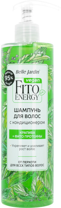 شامپوهای فیتو انرژی وگان انرژی عصاره های گیاهی، پروتئین ها و روغن ها را متمرکز می کنند. هم افزایی مواد طبیعی قادر است مو را پر از انرژی کند، رطوبت لازم و تغذیه فشرده را به آن بدهد. شامپو تارهای خشک مو را مرطوب می کند و از موهای چرب مراقبت می کند. ترکیبات موجود در شامپو: عصاره گزنه، عصاره رزماری، روغن درخت چای، پروتئین های جو دوسر باعث تقویت موها، افزایش رشد آنها، در عین حال جلوگیری و از بین بردن شوره سر، بازگرداندن نرمی ابریشمی به موها می شود.
