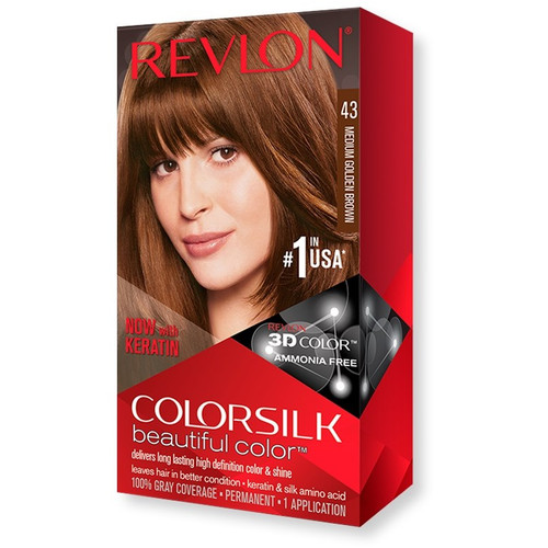 کیت رنگ موی بدون آمونیاک رولون شماره 43 قهوه ای طلایی متوسط Revlon Colorsilk